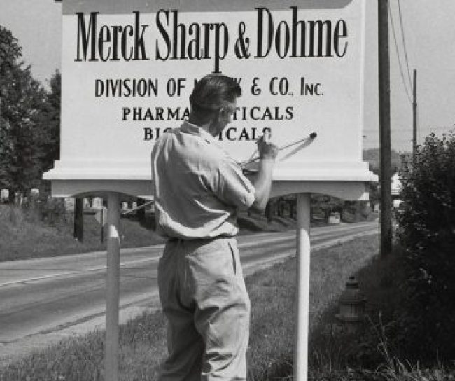 A fusão para criar a Merck Sharp & Dohme (MSD), com sede em Rahway, Nova Jersey, EUA, reuniu nossas extensas instalações de pesquisa e fabricação química com o desenvolvimento farmacêutico da Sharp & Dohme, a expertise em marketing e a presença internacional. As instalações da Sharp & Dohme em West Point, Pensilvânia, foram incluídas na fusão.